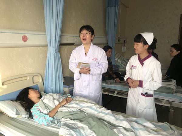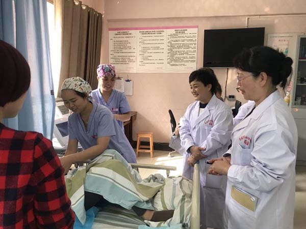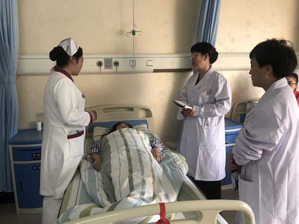 張燕萍主任床旁詢問(wèn)婦科病人情況