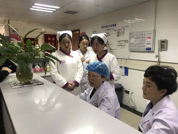11月9日清晨7:30,由湖南省腫瘤醫(yī)院副院長(zhǎng)諶永毅、湖南省腫瘤醫(yī)院護(hù)理部副主任周蓮清、懷化市第一人民醫(yī)院護(hù)理部主任張燕萍、湖南醫(yī)藥學(xué)院第一附屬醫(yī)院護(hù)理部主任蔣玉蘭組成的專家團(tuán)隊(duì)來(lái)到我院。對(duì)我院《優(yōu)質(zhì)護(hù)理服務(wù)評(píng)價(jià)暨十三五護(hù)理事業(yè)發(fā)展規(guī)劃實(shí)施情況初期評(píng)估工作》進(jìn)行督導(dǎo)評(píng)價(jià)。常德市衛(wèi)生計(jì)生委領(lǐng)導(dǎo)屈貴順、伍成林陪同檢查。