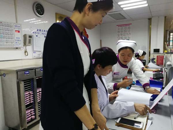 四位專家分頭對(duì)我院普通兒科、急診兒科、新生兒科、婦科、產(chǎn)科、產(chǎn)房、手術(shù)室、消毒供應(yīng)中心進(jìn)行了檢查。檢查內(nèi)容包括:晨會(huì)交接班、床頭交接班、晨間護(hù)理、科室人員配比、病人健康宣教情況、藥物保管儲(chǔ)存、儀器的保養(yǎng)使用情況、庫(kù)房整理、無(wú)菌物品存放、責(zé)任護(hù)士對(duì)病人了解,護(hù)理質(zhì)量持續(xù)改進(jìn)資料等等。